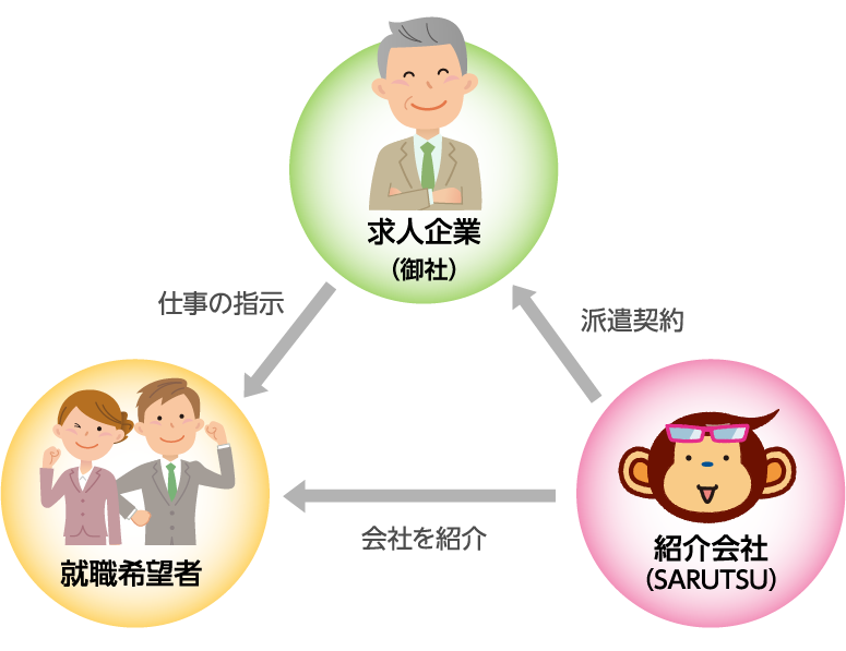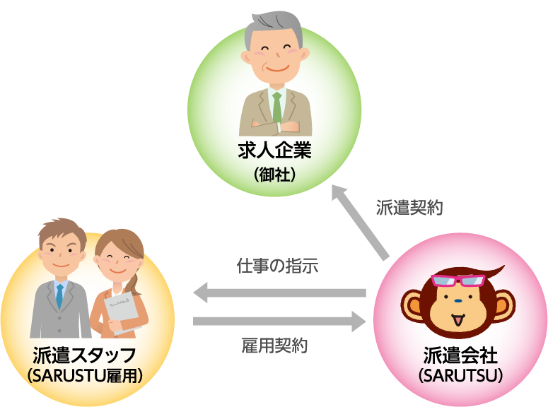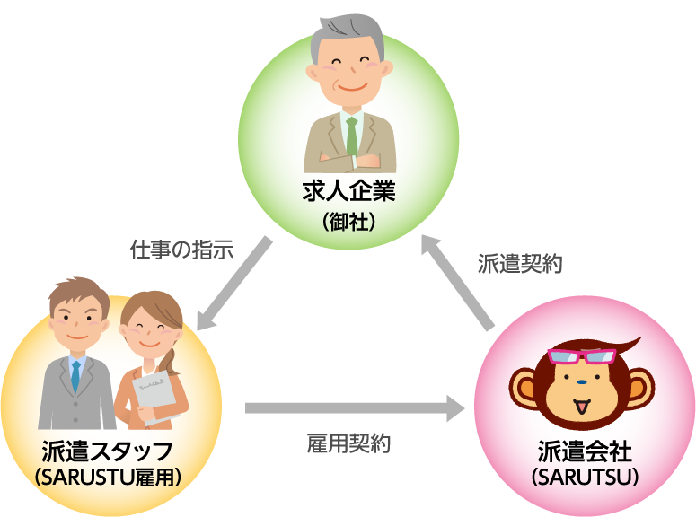 人材派遣とは、雇用主が実際に働く企業と異なるところが、正社員・契約社員などの直接雇用との大きな違いです。